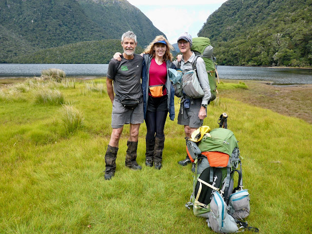 The weather held the next morning as we packed up in the dark. Today was the day for the Jaquiery Pass. I felt nervous as back in 2006, Simon and I retreated from this formidable crossing. What if we failed again – a return to the “Valley of Sorrows”, Dagg Sound and Crooked Arm? I shuddered at the prospect but then I reasoned if anyone could succeed, it would be this veteran team. We had come through thick and thin – we needed faith – we must stay the course. And we did . . . we had a plan and it worked. The key was an old slip 2 km up the valley, not easy but doable. On the far side, we descended our old flagged route to camp at our old campsite at 500m.